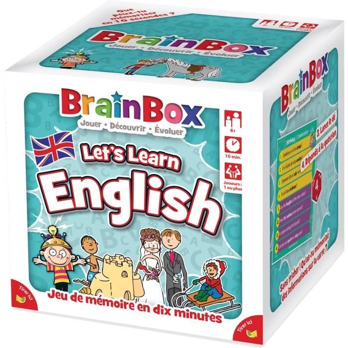 Apprenez l’anglais en jouant ! Observez une carte bilingue anglais/français pendant 10 sec répondez aux questions grâce au dé. Un jeu éducatif et ludique pour petits et grands. Développez mémoire et observation. Contient 55 cartes 1 sablier 1 dé et les règles.
